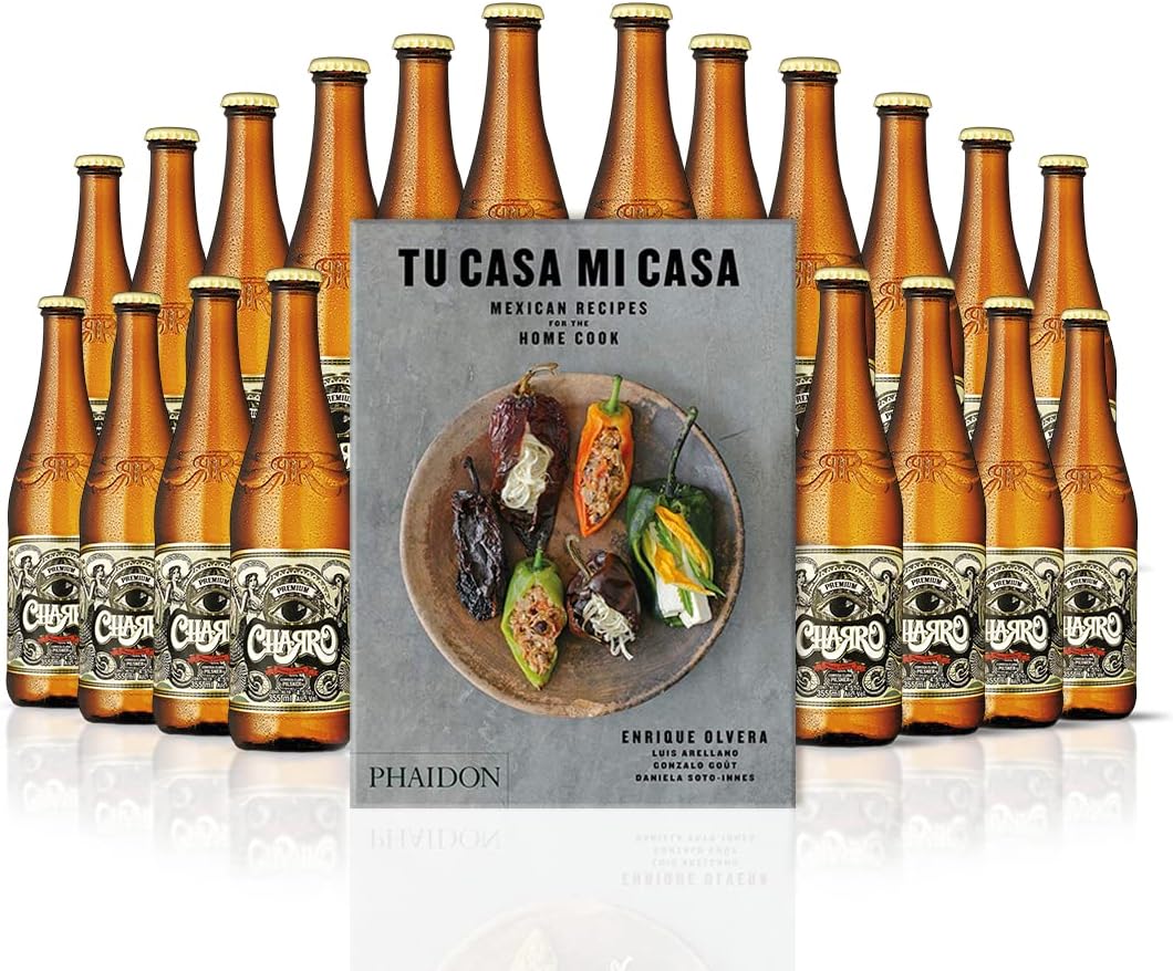 Pack de 20 cervezas Charro Pilsner de 355 ml cada una + 1 Libro Tu Casa Mi Casa Enrique Olvera.